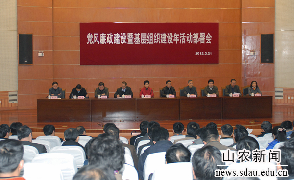 校党委副书记张敬和主持会议,并对基层组织建设年活动进行部署。校纪委书记董新胜在会上作了题为《坚持改革创新,狠抓工作落实,努力取得党风廉政建设和反腐败工作新成效》的工作报告。学校领导温孚江、孙永华、董树亭、张宪省、车先礼、朱莉出席会议。会前,全体与会人员观看了加强党风廉政建设的两部宣传教育片。