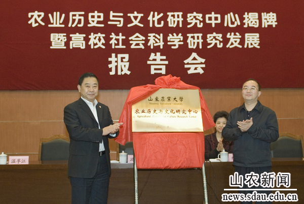 仪式由校党委书记邢善萍主持。校长温孚江、教育部高等学校社会科学发展研究中心主任冯刚为中心揭牌。副校长张宪省宣读山东农业大学关于成立农业历史与文化研究中心的决定。