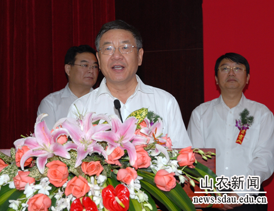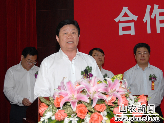 张建龙在致辞中说,这次签约是贯彻落实国家林业发展“十二五”规划和国家中长期教育改革发展纲要的实际行动。当前我国林业发展正处于生态建设为主的新阶段,迫切需要发展林业教育事业,全面增强科技支撑和人才保障能力。山东地处东部沿海,拥有山区、丘陵、盆地、平原等多种地貌类型,林业发展潜力巨大。为促进山东林业更好更快发展,2009年底,国家林业局和山东省人民政府签署了合作共建绿色山东框架协议。山东农业大学拥有60余年独立建校和百余年的办学历史,是山东省培养高级林业人才的主要院校和林业科技创新的重要基地,为促进区域经济社会发展和林业生态建设做出了积极贡献。国家林业局和山东省人民政府签署共建山东农业大学协议,就是要充分发挥各方优势,共同推进高等林业教育的科学发展,培养更多更好的高层次林业人才。今后国家林业局将从高等林业教育、科技创新能力、林业学科建设等多方面加强对山东农业大学的指导与支持,同时也希望山东农业大学在省委省政府的坚强领导下,抓住机遇,加快发展,不断提高办学水平,双方共同携手,加强合作,共同努力,把山东农业大学建设成更高水平的知名大学。
