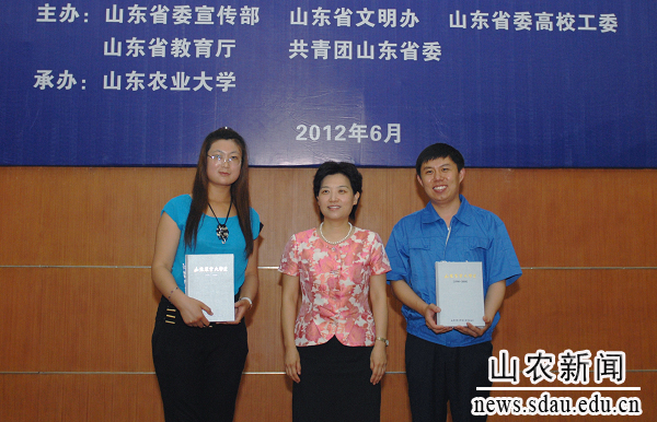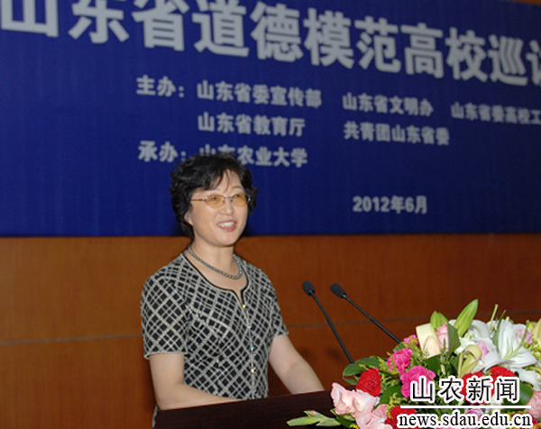 省委高校工委副书记黄琦,省文明办副主任宫松章,山东农业大学党委书记邢善萍,山东农业大学副校长车先礼,泰安市委宣传部副部长、市文明办主任亓顺民出席报告会。山东农业大学党委副书记张敬和主持报告会。