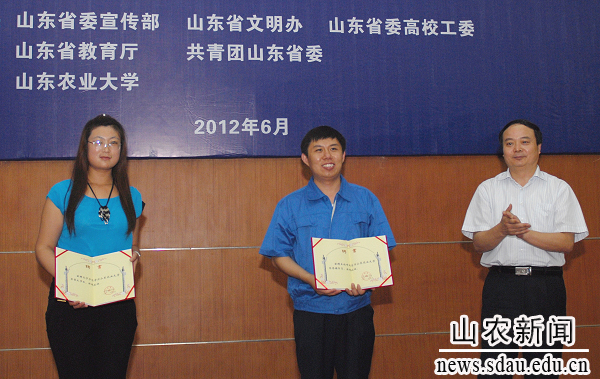为进一步加强学校德育工作,不断深化“知荣辱、明方向、树新风”主题教育活动,经学校研究决定,聘请王钦峰同志为山东农业大学荣誉辅导员;聘请孙莎莎同学为山东农业大学荣誉学生。副校长车先礼向孙莎莎、王钦峰颁发了聘书。