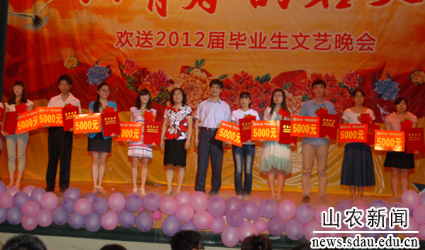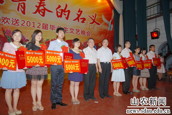文艺演出中间还颁发了第十届“校长奖学金”,20名优秀毕业生每人获得5000元奖励。毕业生代表深情表达了对学校老师的感激之情,并表示今后将在新的起点上锐意进取,全面发展,努力成长为可堪大用、能负重任的栋梁之材,为母校增光添彩。 文章来源:农大报社