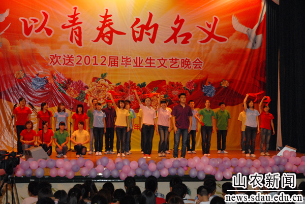 6月28日晚,山东农业大学“以青春的名义”欢送2012届毕业生文艺晚会在西礼堂隆重举行,师生们用丰富多彩的表演为毕业生温情送行。校领导邢善萍、张敬和、孙永华、董新胜、车先礼、朱莉、高东升和各学院各部门负责同志及师生代表共同观看演出。省青联秘书长徐宁应邀一同观看。