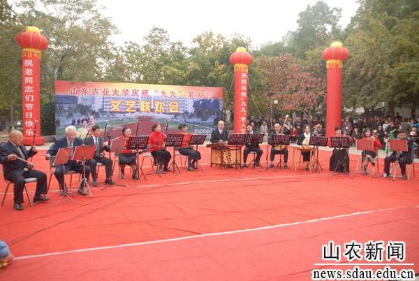 10月23日下午,山东农业大学庆祝“九九”老人节文艺联欢会在夕阳红广场举行,校领导邢善萍、张敬和、孙永华、董树亭、董新胜、车先礼、朱莉、嵇景涛,各单位、各部门负责人和离退休教职员工欢聚一堂,共庆老人节。联欢会前,举行了颁奖仪式,张敬和宣读表彰决定,邢善萍等为获得中国老教授协会“老教授科教工作优秀奖”的孙兰珍教授和学校离退休干部职工工作先进集体颁奖。