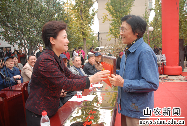 校党委书记邢善萍为获得中国老教授协会“老教授科教工作优秀奖”的孙兰珍教授颁奖