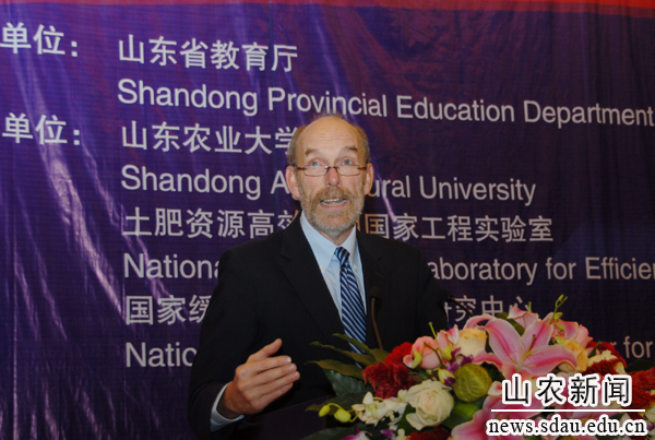佛罗里达大学John P. Hayes 教授在致辞中高度评价山东农业大学的建设发展和教学科研成就,希望进一步加强人才培养、科学研究等领域的交流合作,促进双方共同发展。