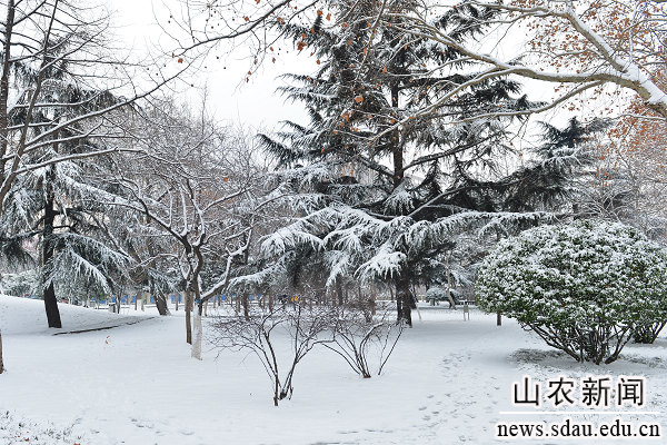2013年农历第一个节气“立春”刚过,一场大雪便如约而至。大地银装素裹,皓然一色,一派瑞雪兆丰年的祥瑞景象。农大校园里美丽的雪景吸引着流连忘返的人们,他们在赏雪、留影、扫雪等活动中留下快乐的身影,用欢声笑语表达对美好未来的憧憬。