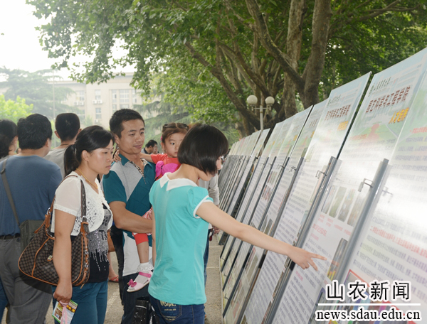 为使考生和家长更好地了解学校,学校组织各学院和招生主管部门设立了山东农业大学招生咨询区,进行现场招生咨询,摆放展板,发放宣传材料,介绍招生政策,宣传办学优势,工作人员耐心向考生和家长解答所提出的问题,对填报志愿进行指导;同时安排校园导游、学生志愿者陪同考生及家长参观校园,使考生和家长对学校的了解更为直观。泰安市岱岳区的小梁同学是和父母还有妹妹一齐来咨询的。小梁说:“自己计划报考山东农大,家里人也很支持,因为大家都看到了国家对农业发展的重视。相信农业院校的大学毕业生将来一定大有可为。”学校专门设立的大学生创业产品展,吸引了众多考生和家长驻足观看,大家对创业团队的产品赞不绝口。有的家长和考生现场就购买了几件创业作品,“我要把这些带回家,让亲戚朋友们都看看,将来孩子到农大学习后,也能开辟自己的创业新天地。”学校有关部门积极做好后勤服务和安全保障工作。后勤部门设立了供水点,派驻了医务人员,为参会人员提供细致周到的服务;公安部门与市交警部门联系,对车辆进行疏导,并组织人员维持现场秩序;南管委、东管委积极做好考生和家长参观导引、校情介绍以及校区校园秩序和交通安全维护工作。