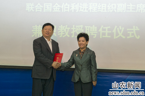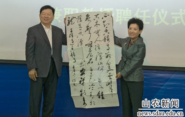 战略合作协议签约仪式上,邢善萍向魏传忠颁发山东农业大学兼职教授聘书,并接受魏传忠向学校赠送的书法作品和书籍。国家质检总局动植物检疫监管司司长黄冠胜与副校长张宪省代表双方签署战略合作协议。副校长嵇景涛主持协议签署仪式和报告会。