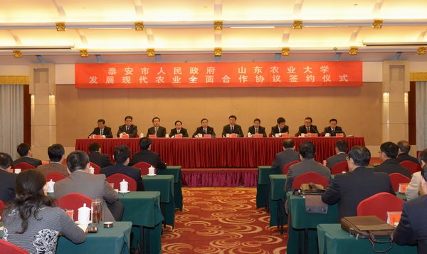 5月6日,山东农业大学与泰安市人民政府发展现代农业合作协议签约仪式在泰安市举行。泰安市市长王云鹏、市委副书记李希信、副市长张瑞东,山东农大校长温孚江、副校长张宪省参加活动。