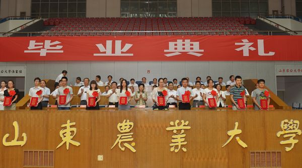 副校长车先礼主持毕业典礼。毕业典礼上宣读了学校表彰2014届省级优秀毕业生和山东农业大学优秀青年志愿者的决定,学校领导为获奖同学颁奖。