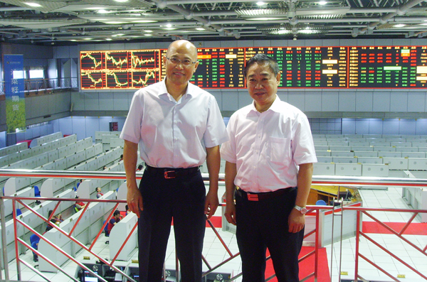 温孚江在张凡陪同下考察郑商所期货交易大厅