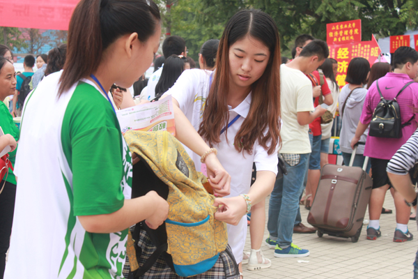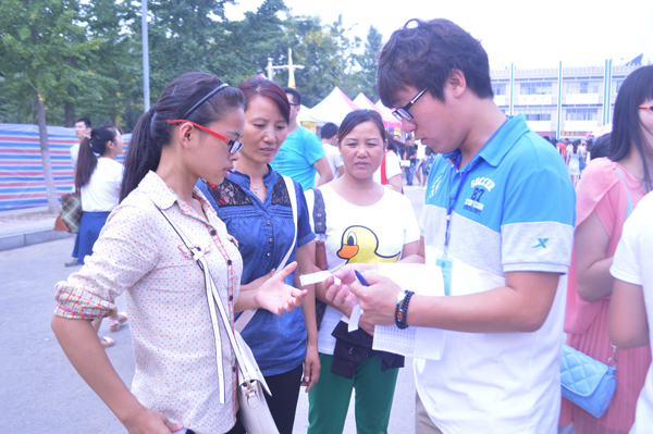 志愿者仔细叮嘱注意事项(园艺学院供稿)