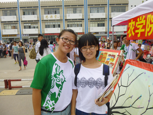 志愿者为学弟讲解“漫画地图”(农学院供稿)