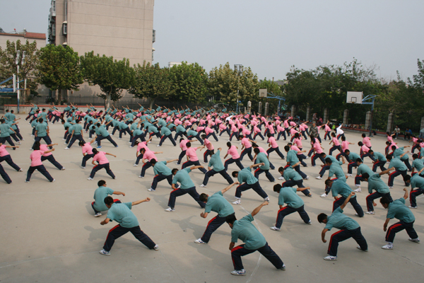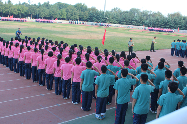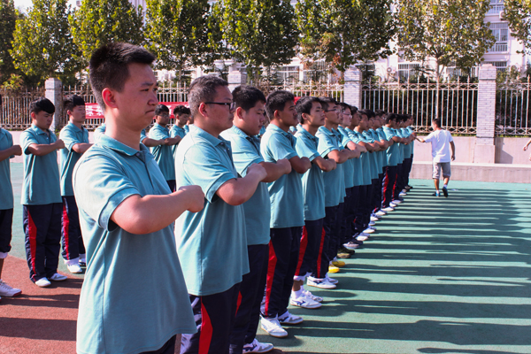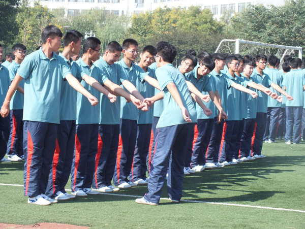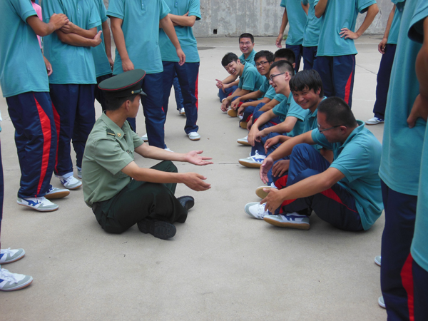 同学之间互相纠正摆臂动作(文法学院供稿)