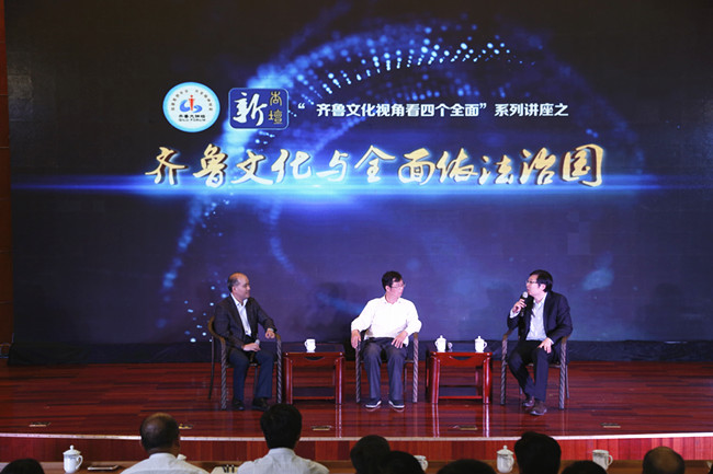 9月30日,齐鲁大讲坛“齐鲁文化视角看四个全面”专题讲座在我校举行。中央党校政法部主任卓泽渊、山东省社科联副主席张宏明、山东大学法学院副院长李忠夏、山东师范大学社科处处长孙书文等专家学者齐聚一堂,共话“齐鲁文化与全面依法治国”。