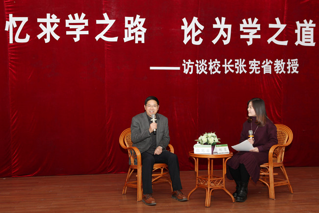 12月21日,严冬时节校园里寒气袭人,但东校区教学楼217教室里却暖意融融、气氛热烈。一场别开生面的访谈活动在这里举办,校长张宪省与青年学生温情回忆求学路,畅谈为学之道。