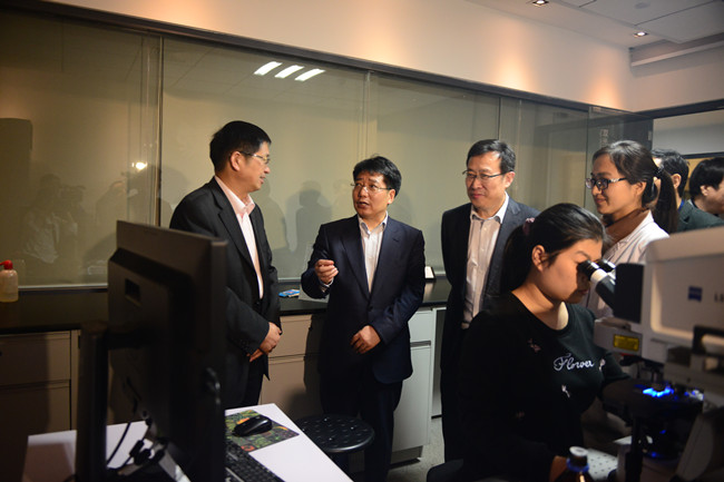 座谈会后,党委书记徐剑波、校长张宪省陪同邓云锋一行参观了校史馆,考察了作物生物学国家重点实验室。参观过程中,邓云锋不时与学校领导交流,了解学校办学情况,询问发展中遇到的实际问题,表示将为学校发展提供更多的政策支持。