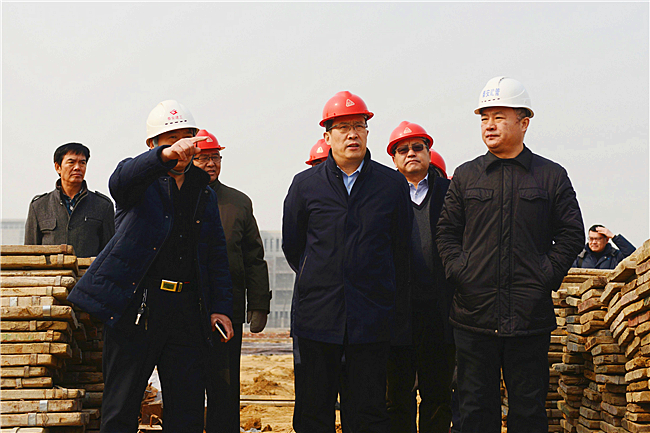 走出教室,徐剑波和张宪省先后来到南校区东南片区项目建设工地。工地上一片繁忙景象,机器轰鸣,人员穿梭,挖土机、大吊车等大型机械紧张作业,三四百名工人正在热火朝天忙碌。据了解,自大年初四开始,施工人员就开始进场,工程推进速度令人惊叹。在泰安市有关部门和施工方负责人陪同下,徐剑波仔细查看工地的角角落落,详细询问工程进度和工程细节,对泰安市和承建单位对农大的支持与帮助表示真诚感谢。他强调,高标准做好片区建设,不仅体现了学校对泰安市经济社会发展的全力支持,也是学校全面推进“双一流”、加快建设高水平大学的必然要求,关系广大师生的切身利益。百年大计、质量为本,要切实加强质量把控,强化风险意识,真正把片区建设成为师生满意的民心工程。