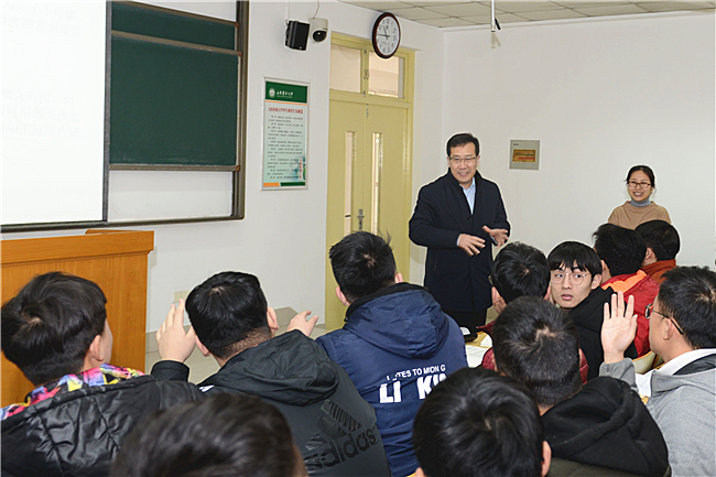 初春的山农校园,处处生机勃勃、充满活力。上午10点,在南校区W405教室,党委书记徐剑波听取了林学院木材专业青年教师李琪的《木材切削原理与刀具》第一节课。李琪主要研究生物质能源及材料的开发,四年前从美国密西西比州立大学作为人才引进到林学院。她上课重点突出,逻辑清晰,还充满青春朝气,不时与学生幽默互动。徐剑波全神贯注听课,观察着同学们的反应,并随手在本子上做记录。下课后,徐剑波与李琪老师和同学们亲切交流,称赞李琪老师的课讲得好,夸赞同学们听课认真。他微笑着问有多少同学第一志愿报考了木材专业,一多半同学哗啦啦把手举过头顶,徐剑波非常高兴,鼓励同学们注重学习方法,用心学好专业,提高综合素质,努力成长为社会主义事业的合格建设者和可靠接班人。