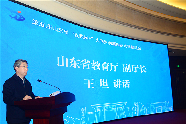4月17至18日,第五届山东省“互联网+”大学生创新创业大赛推进会在山东农业大学召开。省委教育工委委员,省教育厅副厅长、党组成员王坦,山东农业大学党委书记徐剑波出席会议。来自省教育厅、全省130余所高校和9个地市教育局的300余名代表参加会议。