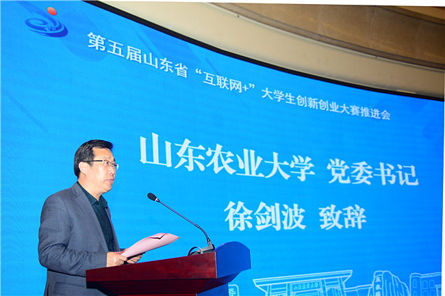 徐剑波在开幕式上致辞,向与会人员介绍了学校办学发展,特别是全面推进大学生创新创业工作的情况。徐剑波说,党的十八大以来,山东农大主动对接“大众创业、万众创新”的时代要求,突出实践育人特色,逐步建立起了学校为主导、学院为主体、学生为主角的工作运行体制,打造了学校培育、基地孵化、社会扶持“三位一体”工作体系,探索完善了以专业驱动、项目驱动、平台驱动、赛事驱动为主要内容的“双创四驱”工作模式,涌现出了全国就业创业优秀个人、中国“互联网+”大学生创新创业大赛金奖等一批优秀学生和优质项目,获得了全国创新创业典型经验高校、全国高校实践育人创新创业实践基地等荣誉称号。他表示,学校将以“互联网+”大学生创新创业大赛为平台,进一步推动创新创业融入“双一流”建设和人才培养全过程,让创新创业成为教师教学、学生求学的思想自觉与行动自觉。