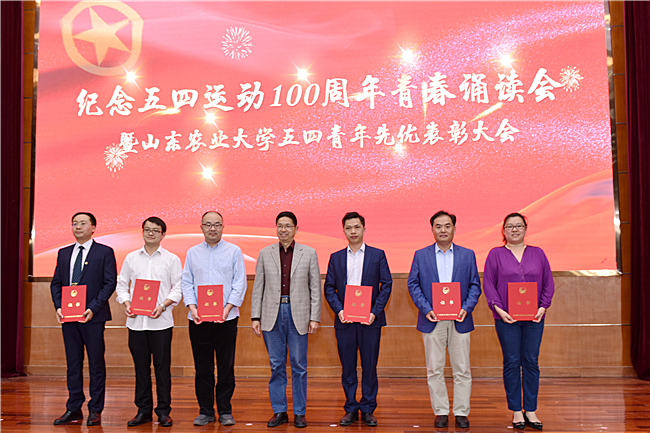 青春心向党,建功新时代。5月7日,学校隆重举行纪念五四运动100周年青春诵读会暨山东农业大学五四青年先优表彰大会。学校领导徐剑波、张宪省、朱莉、杨天梅、高东升、嵇景涛、张明志、王振林、吴衍涛出席活动并为青年先优集体和个人颁奖。