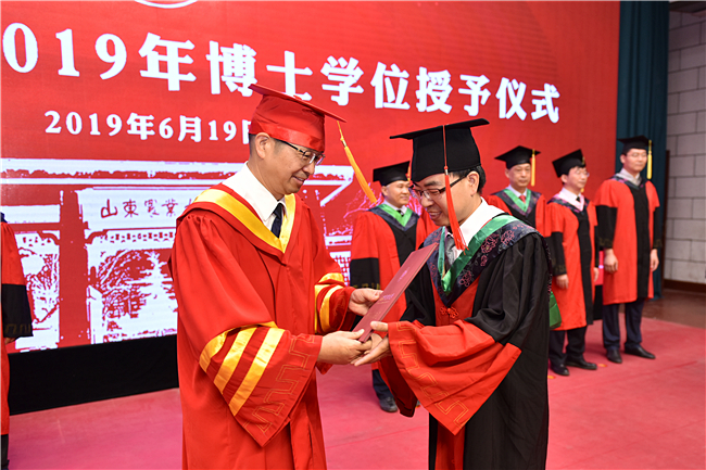 上午9点20分,学位授予仪式正式开始。张宪省逐一向每一名博士和硕士研究生授予学位,司金贵为他们拨穗儿。