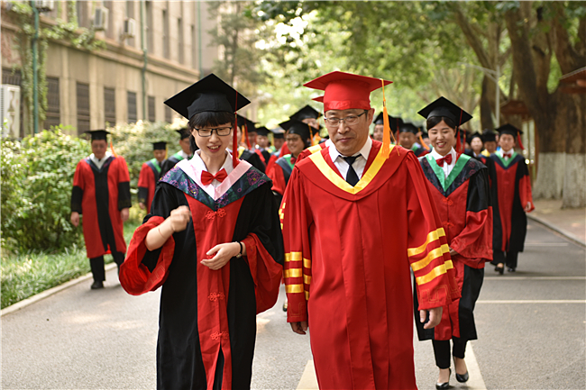 仲夏时节的校园清晨,晨曦徐徐,美景如画。6月19日一大早,党委书记徐剑波、校长张宪省等校领导身着导师服来到1号楼前,与2019届研究生毕业生亲切交谈、合照留念。随后,校领导与青年学子一起穿过绿树成荫的校园,边走边聊,到西礼堂参加山东农业大学2019届研究生毕业典礼暨学位授予仪式。