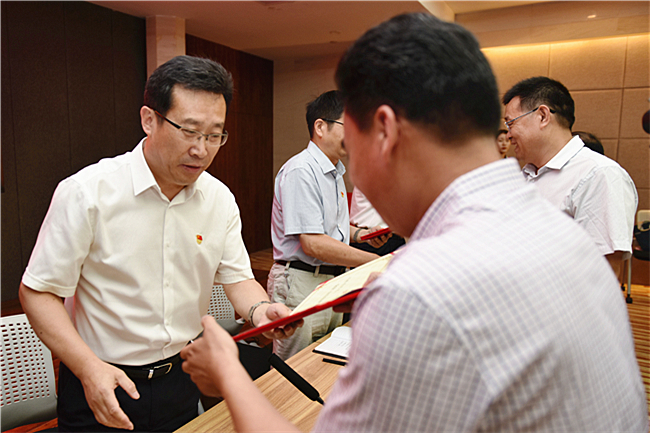 会上,党委副书记朱莉宣读了省委、省委教育工委、泰安市委表彰决定。李玲同志被授予“山东省优秀共产党员”称号;艾仕云、张铁成同志被授予“山东教育系统优秀共产党员”称号,李强、亓爱收同志被评为“山东教育系统优秀党务工作者”,学校办公室党支部被评为“山东教育系统先进基层党组织”;基建处党支部被评为“新时代泰山‘挑山工’先进集体”,魏珉同志被授予“新时代泰山‘挑山工’先进个人”称号。