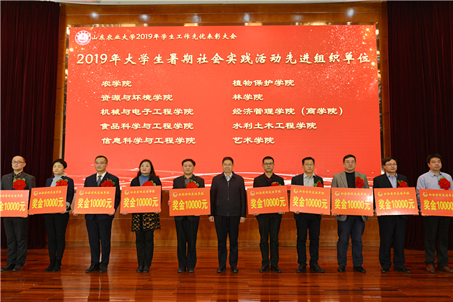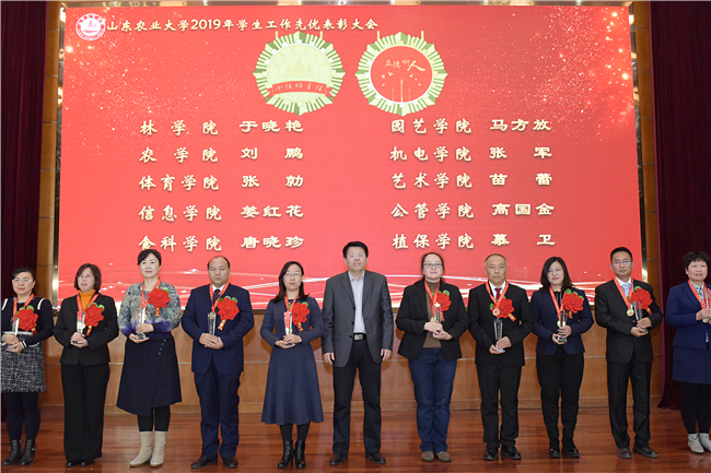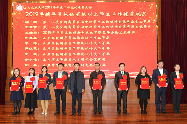 奋斗的青春最美丽,2019年,农大学生中涌现出了一批青春偶像和山农榜样。他们朝气蓬勃、好学上进,视野宽广、开放自信,执着求知、博采众长。副校长辛杰为“十佳大学生”颁发奖章和奖杯。