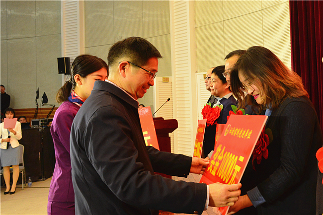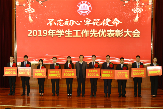 学校实施“筑梦工程”,不让一个学生因家庭经济困难而失学;完善奖励机制,让每一名努力优秀的学生受表彰得实惠,全年25522人次获资助3900余万元。副校长司金贵为国家奖学金和省政府奖学金获得者代表颁奖。