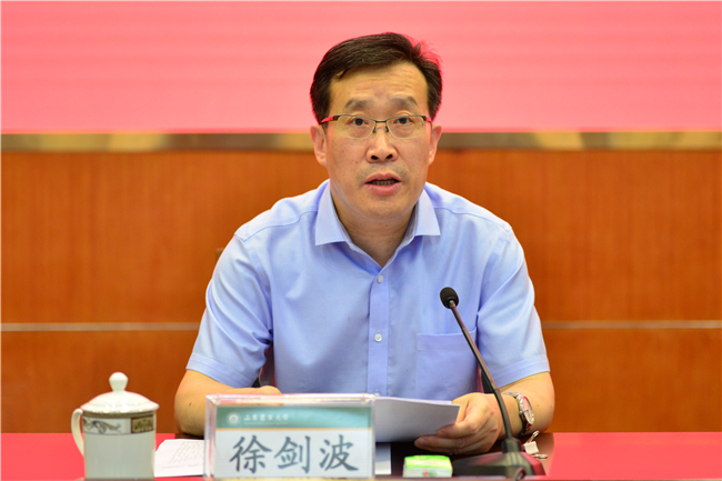 徐剑波指出,在我国新冠肺炎疫情防控取得重大战略成果、统筹推进疫情防控和经济社会发展工作取得积极成效的重要时刻,全国“两会”胜利召开,对于进一步坚定信心、凝聚全国各族人民的智慧和力量,决胜全面建成小康社会、决战脱贫攻坚,具有特殊重要意义。各级党组织、各单位各部门和全校师生都要把学习贯彻全国两会精神,特别是学习贯彻习近平总书记在全国两会上的系列重要讲话精神作为当前重要的政治任务,创新方式方法、抓实工作举措,切实推动两会精神入脑入心。要把学习贯彻两会精神与学习贯彻习近平新时代中国特色社会主义思想紧密结合起来,与学习贯彻习近平总书记对山东工作的重要讲话、重要指示、重要要求紧密结合起来,继续在学懂弄通做实上下功夫,深刻理解贯穿其中的马克思主义立场观点方法和蕴含其中的新理念新思想新战略,做到深学笃行、举一反三、触类旁通,进一步武装头脑、指导实践、推动工作,确保在重大问题上立场坚定、态度鲜明,不断提高办学治校的能力水平。