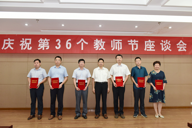 9月9日,学校庆祝第36个教师节座谈会在学实楼举办,表彰教育教学一线中涌现出的先进典型,交流学习工作经验。校领导徐剑波、张宪省、杨天梅、辛杰、张然出席会议,并为获奖人员颁奖。