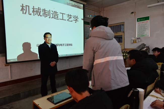 3月3日上午,党委书记徐剑波来到机电学院青年教师周凯的《机械制造工艺学》课堂,与2018级农机专业、机电专业的学生们一起听课。