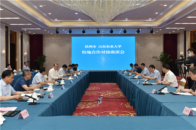 张月波在座谈时表示,山东农业大学有百年办学底蕴,作为全省“冲一流”建设高校和全国知名农业院校,高层次科研成果和人才资源非常丰厚,一直以来,学校对滨州市经济社会发展给予了有力支持,取得了丰硕成果。当前,滨州正在建设产教融合型、实业创新型“双型”城市,无论在技术创新还是文化提升方面,都比以往任何时候更需要高水平大学、科研机构的智力支撑。希望山东农业大学师生继续关注、支持滨州,为滨州发展多提宝贵意见;希望双方不断拓宽合作领域,进一步把“共建共赢”理念贯穿合作始终,让山东农业大学更多成果在滨州落地生根、开花结果,造福当地人民群众,助推滨州现代农业和经济社会实现高质量发展。
