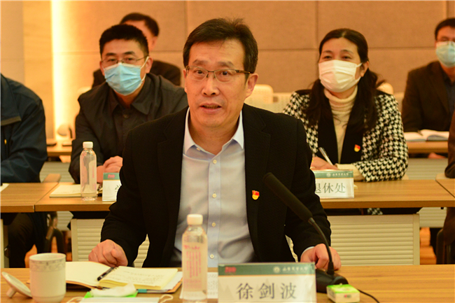徐剑波在发言时说,党史学习教育开展以来,学校党委全面落实中央决策部署和省委工作要求,把“我为群众办实事”作为党史学习教育的着力点和切入点,深入开展调查研究,广泛了解师生群众所思所想所盼,聚焦师生群众反映的共性需求和存在的普遍性问题,研究提出和实施23项全校性的“我为群众办实事”重点项目,目前,已完成其中的15项,剩余8项正在稳步推进中。期间,借助学校办学优势和办学特色,先后打造了“百名党员专家联百村”“初心课堂”等工作亮点,有关工作案例被写入新华社《高校党建和思想政治工作进展成效综述》,受到人民日报、光明日报等主流媒体关注。
