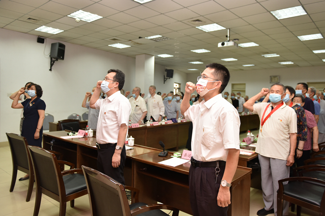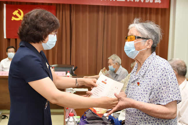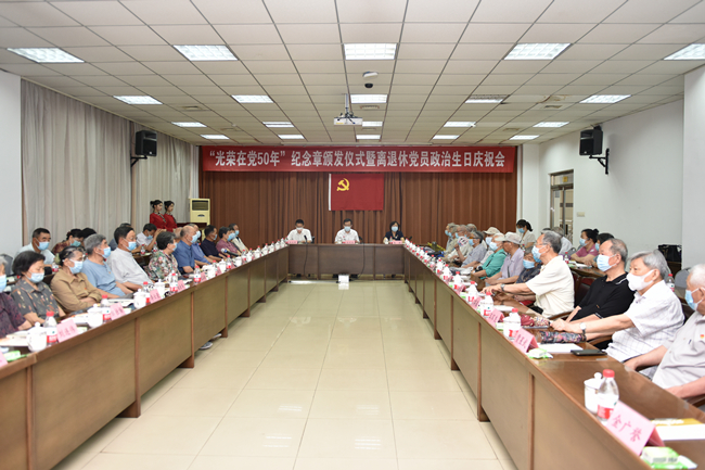 党的第101个生日即将来临之际,6月23日,学校举行“光荣在党50年”纪念章颁发仪式暨离退休党员政治生日庆祝会,重温入党誓词,共忆初心使命。学校党委书记徐剑波、党委副书记朱莉出席会议,为参加活动的老党员逐一颁发纪念章,送上政治生日贺卡。党委常委、组织部部长岳远彬主持仪式。