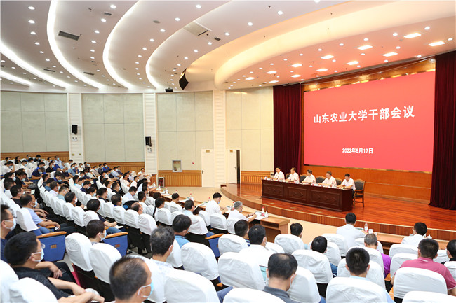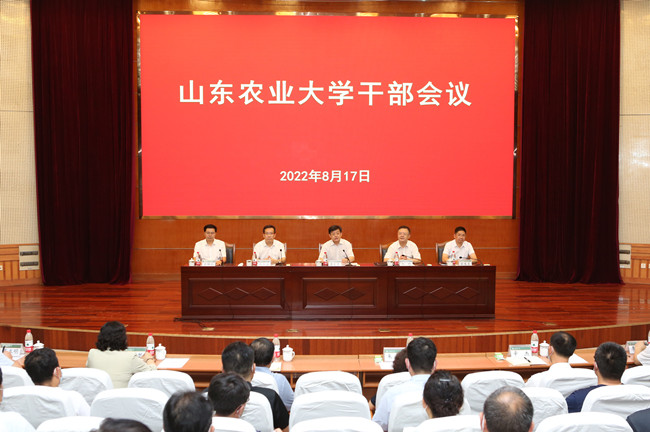 8月17日下午,山东农业大学召开中层以上干部会议,宣布省委关于学校领导班子调整的决定。省委组织部副部长龚文东出席会议并讲话。省委教育工委副书记,省教育厅党组副书记、副厅长白皓宣读省委决定。省委组织部干部五处、省教育厅(省委教育工委)高校干部处负责同志出席会议。学校党委书记徐剑波主持会议。