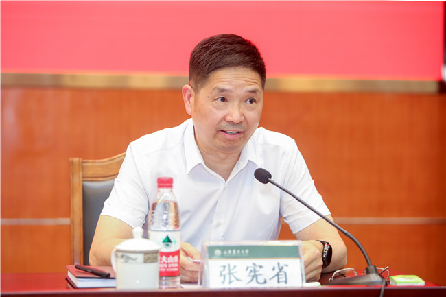 张宪省表示对省委决定完全拥护、坚决服从。他深情回顾了在农大学习工作的经历,衷心感谢省委和省委教育工委对山东农业大学发展的指导和支持,真切表达了对农大和农大师生的深厚感情,对农大未来发展寄予了美好祝愿。他表示,今后将一如既往支持学校的改革发展,衷心祝愿山东农业大学永葆青春、蓬勃兴旺,明天更美好。