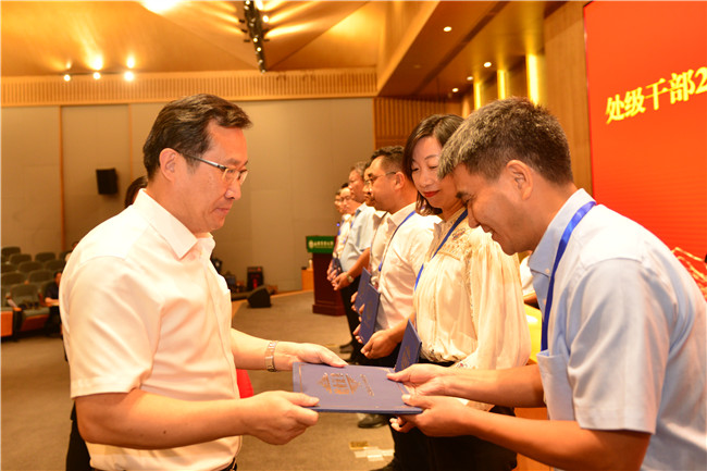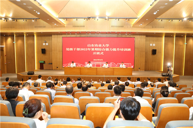 8月24日至28日,山东农业大学处级干部暑期综合能力提升培训班在泰安乡村振兴学院举行。泰安市委副书记、政法委书记于瑞波,省委教育工委学校组织处处长孙启高出席开班式。学校党委书记徐剑波以《奋进一流,共创未来,为实现“三个走在前”贡献山农力量》为题作动员讲话。学校党委副书记、校长冷畅俭主持开班式。学校全体班子成员跟班学习研讨,全体正处级干部、各基层党委副书记等参加培训。