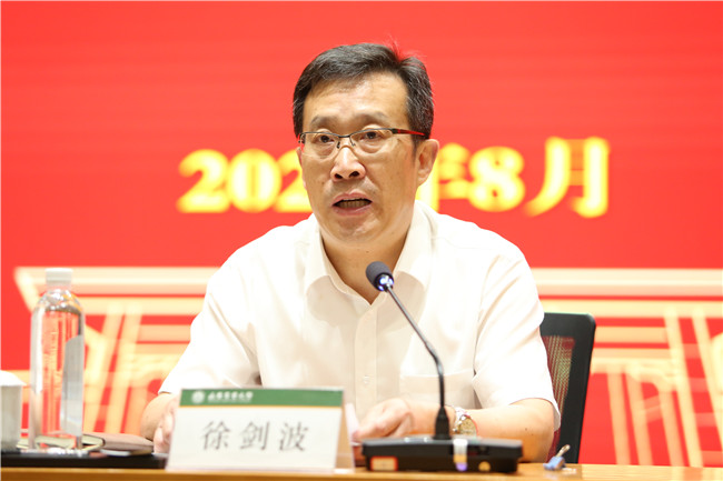 徐剑波强调,党员干部是学校办学发展中的关键一环。面对省第十二次党代会提出的“走在前、开新局”目标任务,全校党员干部要有“逆水行舟,不进则退”的危机感和使命感,牢记习近平总书记殷切嘱托,全面把握学校办学底蕴深厚、师资队伍雄厚、科技创新基因丰厚的良好基础,准确理解“三个走在前”对学校高质量发展提出的新要求,牢牢牵住培养一流人才、争创国家一流学科、产出一流科技成果、打造一流师资队伍等办学发展的“牛鼻子”,当好解放思想的“领头雁”,拓宽思路的“排头兵”,创新思维的“示范者”,推动学校在立德树人、强农兴农中走在前、开新局。
