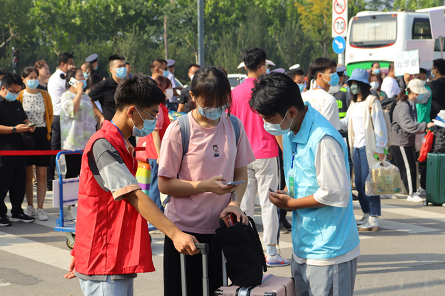 在机场、火车站、汽车站,迎新志愿师生热情为远方的同学们提供咨询、调度车辆,为新生们平安顺利到校提供“前移一公里”服务。学校立足智慧校园开发了迎新功能模块,线上“点对点”传达学校疫情防控要求、查询班级宿舍信息、统计行程信息等,环节更加精简,效率进一步提高。“我在校门口完成身份核验后,在学院新生报到处,刷了一次脸就完成了报到,太便捷了!”食科学院2022级新同学陈浩惊喜地说。