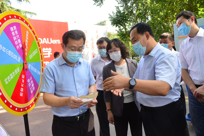党委书记徐剑波、校长冷畅俭来到迎新现场,详细了解工作进展和新生报到情况,与学生亲切交流,勉励他们践行“登高必自”校训,传承农大精神,弘扬山农品质,做到德智体美劳全面发展,努力成长为学农爱农、强农兴农的时代新人。其他学校领导也分别来到报到现场、学生公寓、餐厅等场所,表达对新生同学的美好祝福。