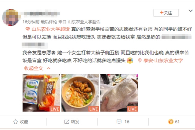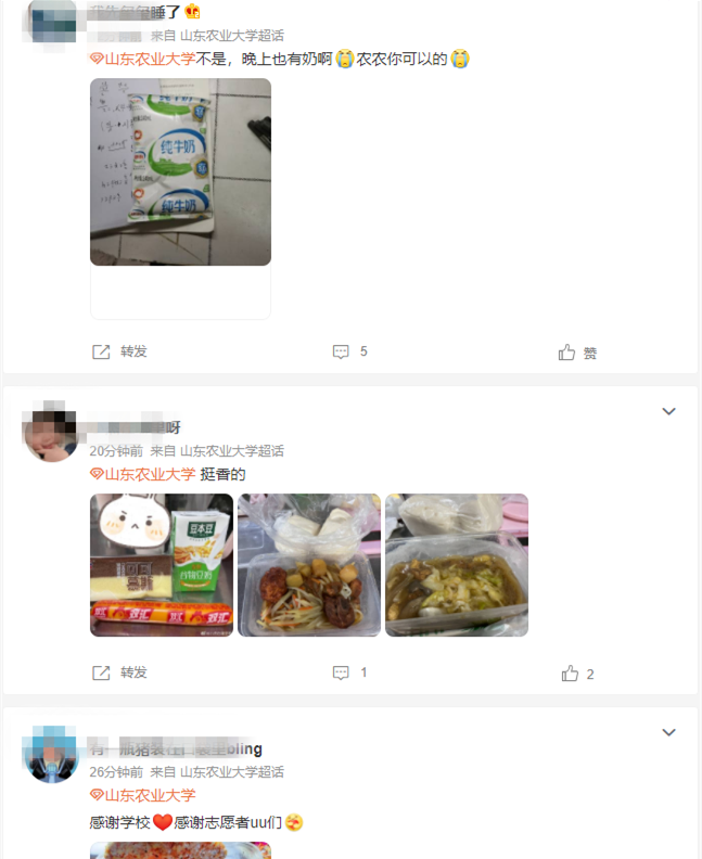 面对疫情,学生们团结一致,为农大加油呐喊,展现出农大学子的风采。他们按照学校要求,第一时间做到“足不出户(宿舍)”,积极配合进行核酸检测,没有任何怨言,没有丝毫慌乱。各个学院的学生微信群里,“山农加油!”的呼声在屏幕中不停闪现。“老师,我们知道学校疫情防控不容易,我们也想为学校抗疫贡献力量。老师,如果有需要请及时联系我们,我们永远站在学校身后。”动科学院2021级硕士研究生李晓敏诚挚地向辅导员老师表达为学校作贡献的想法。与学校共进退,与疫情作斗争,农大校园里精诚团结、共同奋斗的青春力量,让人为之深深动容。