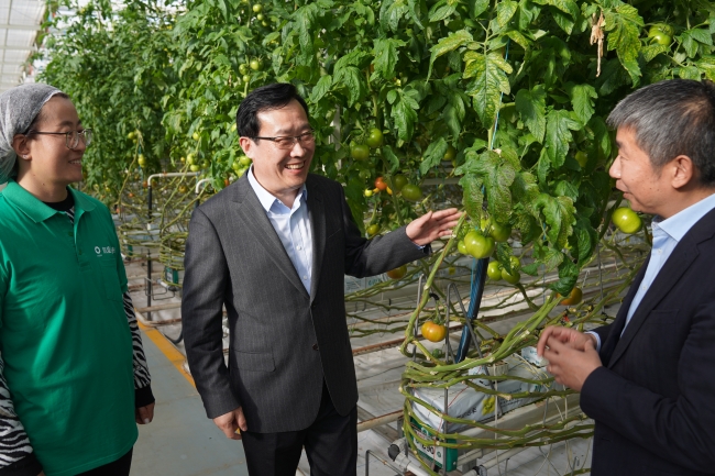 花开三月,春回大地,处处是一派欣欣向荣的景象。徐剑波深入园区、走访行业、走进企业,深入了解行业企业的经营发展状况,调研用人单位人才需求情况,与用人单位就进一步加强产教融合、深化校企合作进行洽谈。在凯盛浩丰智慧农业产业园,徐剑波听取了企业负责人对智慧玻璃温室的介绍,参观了从育苗栽培到采摘包装的全流程西红柿生产线。当得知在现场指导生产的技术骨干徐凤娇是山东农大毕业生时,徐剑波亲切地与她交流,勉励她把在母校学到的理论知识与在企业积累的实践经验结合起来,为地方的农业生产贡献更多的智慧和力量。