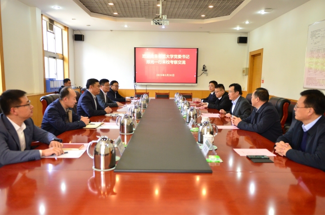 3月30日,曲阜师范大学党委书记邢光、党委副书记卢国强等一行来访,围绕加强基层党组织建设、干部考核评价、科研工作及实验平台建设等进行考察交流。党委书记徐剑波会见客人并座谈,党委副书记嵇景涛参加活动。