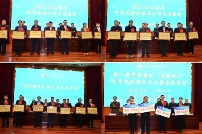 会议表彰了招生就业创业工作先进集体、先进个人和第八届中国国际“互联网+”大学生创新创业大赛金奖团队。植物保护学院、资源与环境学院和机械与电子工程学院分别作典型发言。