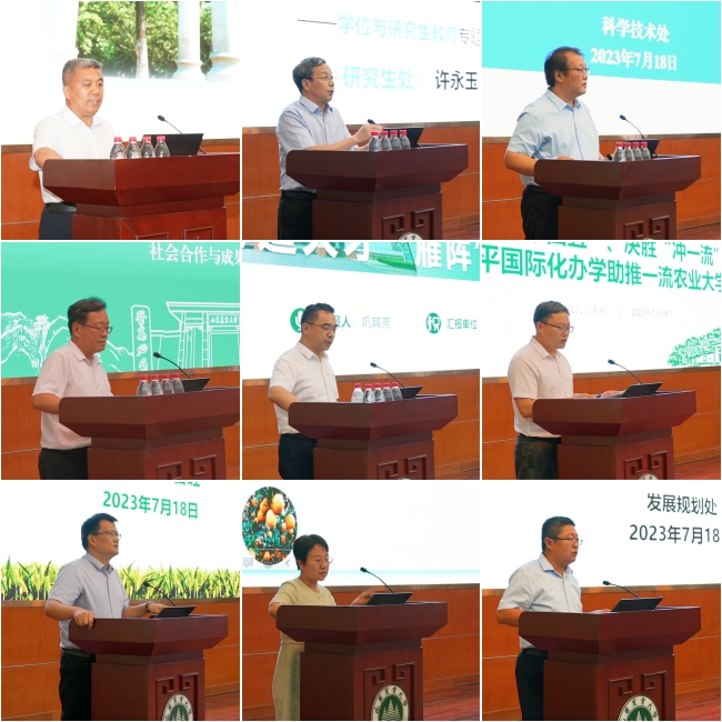 会上,教务处、研究生处、科学技术处、社会合作与成果转化处、国际合作与交流处、人事处、农学院、园艺科学与工程学院、发展规划处等代表9个专题工作组分别围绕各自工作领域专题汇报了“十四五”发展规划完成情况、“冲一流”建设的思路举措。会议期间,各单位各部门就学习领会、传达落实会议精神开展了专题学习研讨。
