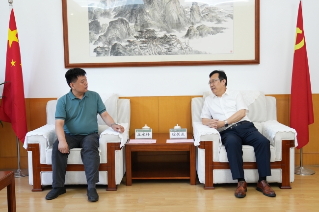 8月11日,省委主题教育领导小组整改整治组庞永祥一行3人来校调研指导,学校党委书记徐剑波会见庞永祥一行,介绍学校推动主题教育走深走实工作举措。省委第二十五巡回指导组组长崔凤友、副组长张荣庆,学校党委副书记嵇景涛,学校党委常委,纪委书记、监察专员刘戈参加活动。